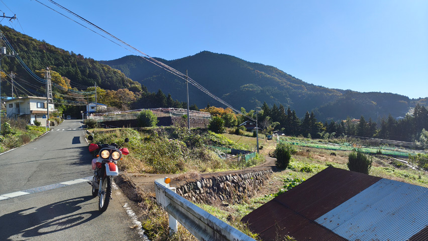そして樫山小森川線といえば、個人的に思い出深いのがここ。林道ツーリングを始めてまだ間もなかった頃にここを訪れたとき、この路肩でコーヒーにしたんだよなあ。ここを通過すると今でもそのことを思い出す。