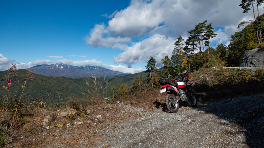 奥山線といえばここ!林道に入ってすぐに表れる、天狗岳を真正面に見据えるこの地点!ここでBAJAを停めて写真を撮るのも今日の楽しみの一つだった!