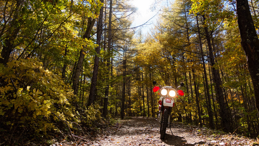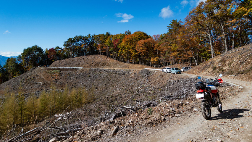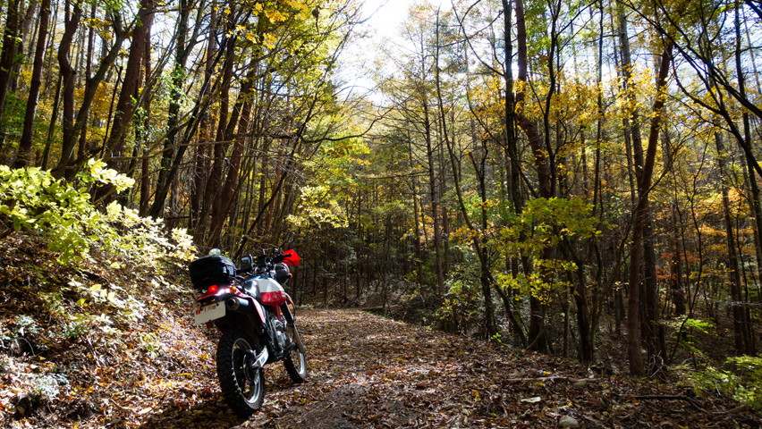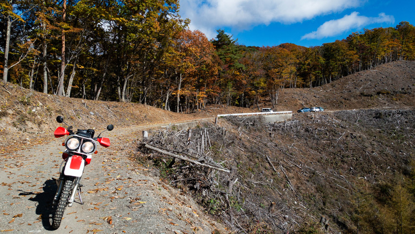 なにより、地域によっては雨予報もあった中、こんなにいい天気の下で林道を走れることが嬉しくてたまらない!日帰り予定とはなってしまったが、今日一日、目いっぱい楽しむぞ!