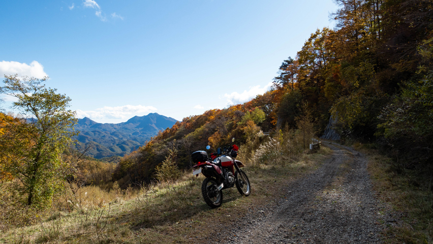 道の外が開けた地点に出た。こういった林道の景色は、今の埼玉では望むべくもなく、こうして他県の林道に訪れたときに見るのが、たまのご褒美みたいな感じで本当に嬉しい。