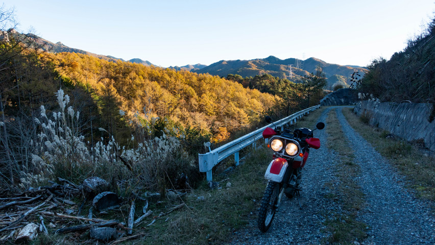 昔、林道ツーリングを始めたばかりの頃は、夕暮れの山の中の景色に物寂しさを感じたりしたこともあったけど、今ではこの喩えようのない美しさが大好きになった。時間さえ許せばキャンプをして、この景色が夜になっていくまでの変化をただ眺めていたいくらいだけどねえ。