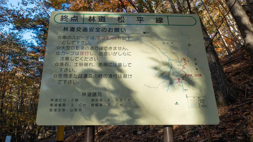 そして、ついに松平線の終点に辿り着いた。初めて走った日に、これだけの素晴らしい景色を見せてくれたおかけで、ここもまた大好きな林道のひとつになった。またいずれ、秋になったらこの季節の景色を見に訪れたいし、季節を変えて緑のシーズンにも訪れてみないとだな。ありがとう松平線、また来るよ!