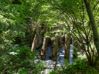 林道など山の中に延びる道を走っていると、時折沢の中に鋼材を組み合わせた砂防堰堤を見かけます。