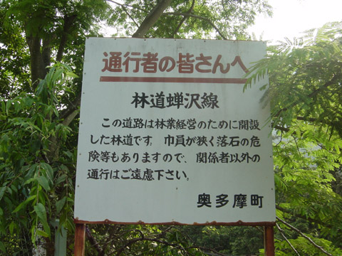 蝉沢線標識。この辺ではあまり見かけないデザインなのは、東京都ではなく奥多摩町の管理だからか。 |