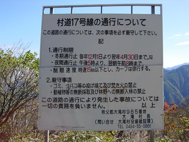 川上牧丘線。山梨側は全線舗装済の快適なワインディング。 |