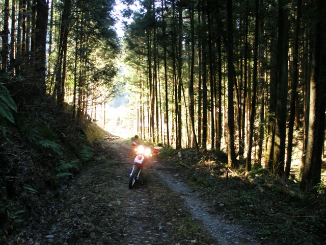 林道日用線。延長1.3km、うちダートは終点側の400m。 |