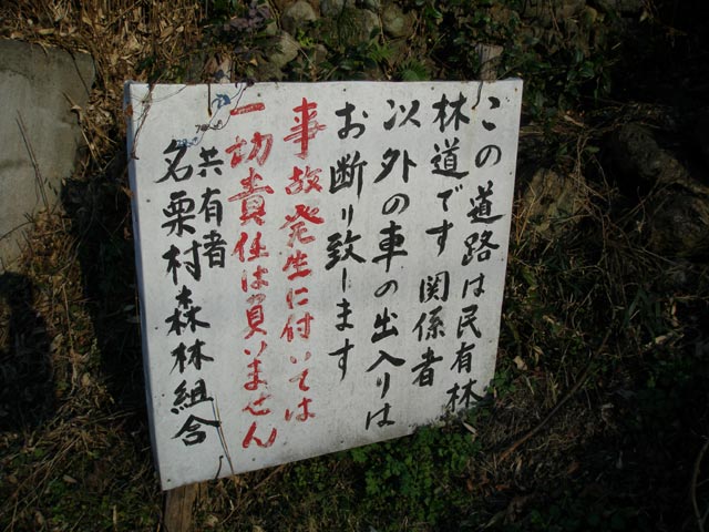 林道名郷沢線。延長0.5km、全線未舗装。 |