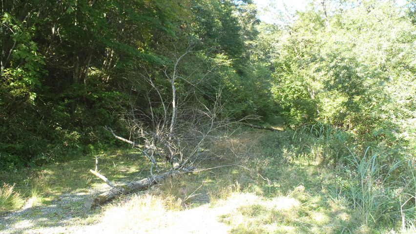 その入り口には、恐らく意図的に置かれたと思われる木が横たわり、奥へと入れないようになっています。