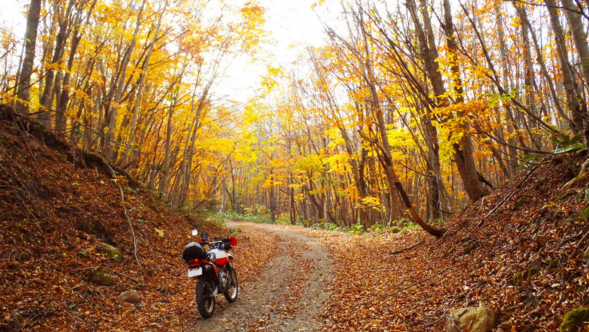 七ヶ岳線、南側区間では洗掘が続く区間もあるけど、総じて走りやすいロングダートの続く林道です。来年もまた来よう!