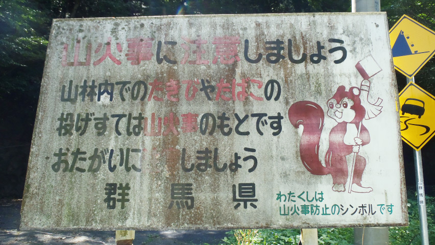 リスの看板自体はオーソドックスなタイプでしたが、その下にセットのように標語のみの看板が設置されていました。