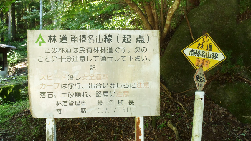 そのまといリスがあるのは、この林道南榛名山線の起点です。なんとなく舗装林道っぽかったのでスルーしちゃいましたが、帰宅後に調べたらやはり全線舗装林道でした。