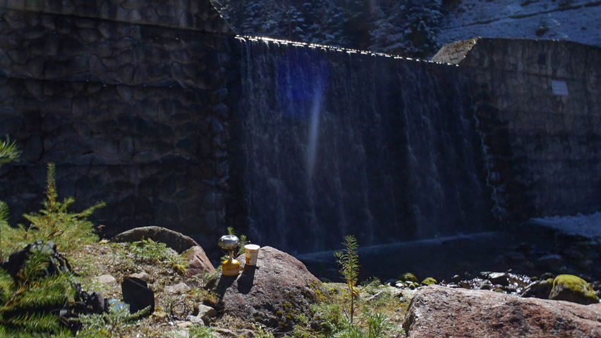 次は荷物を全部背中に背負って、あの堰堤の上で食べよう(笑)。