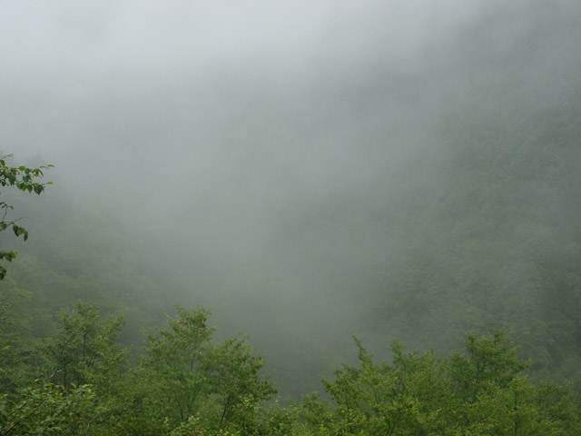 しかし走り出せばまた雨が降り出し、景色は全く開けない。そんな雨でも中津川は非常に走りやすい路面で、特に苦もなく高度を上げていく。