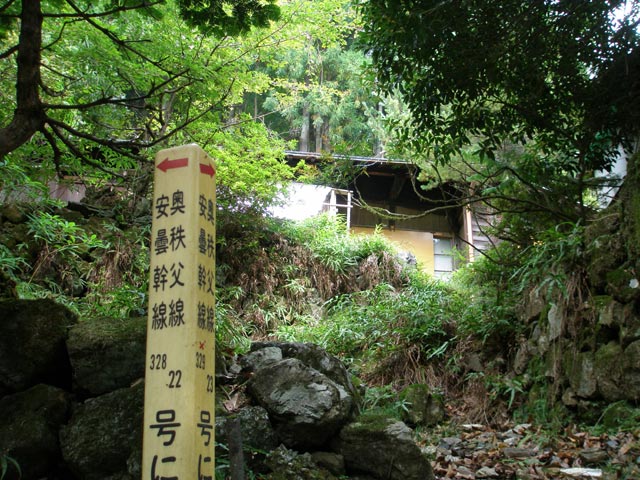 ハイキングコースを外れ、最初に見えてくる廃屋。