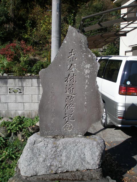 起点標識の脇には、こんな立派な石碑まで建っているんだけど、何か理由があるのかな?終点まで走った感じだと、この辺りにありがちな、何の変哲も無いピストン林道って印象しか受けないけど・・・。