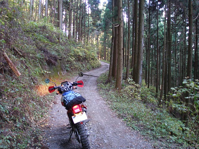 それにしても今日はホントにいい天気だ。気温もかなり暖かいし、こんな日に未舗装林道を走っていると訳も無く気分が上がってくるね。