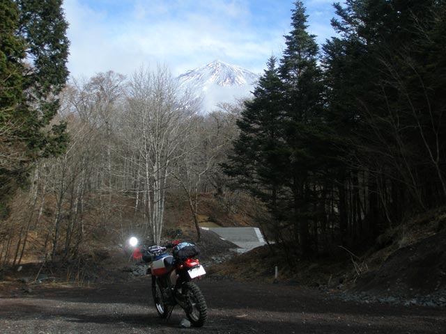ひとしきり富士の麓の林道を堪能し、林道の出口に到着。入口からここまでフルダート、さらに今年初の雪道も走ることが出来て、とても楽しい一日でした。