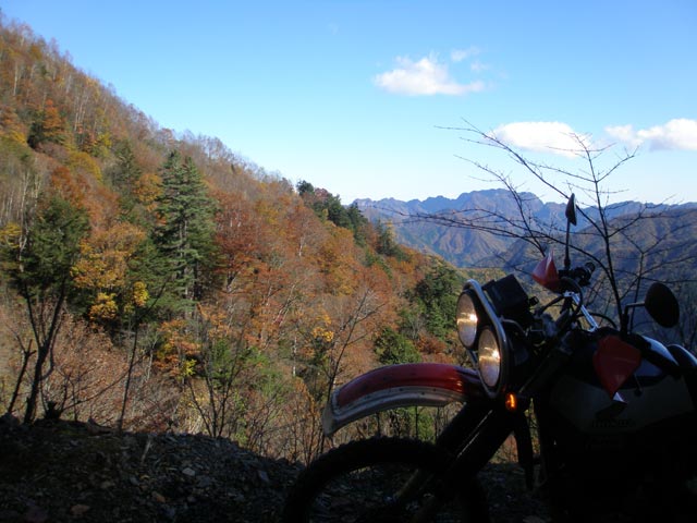 高原野菜の畑の中に伸びる道を快走していく。ああ、こんな天気のいい日に紅葉の相木川上線を走れたら最高だったろうな・・・と思いながら、続いて中津川林道へと戻って行く。