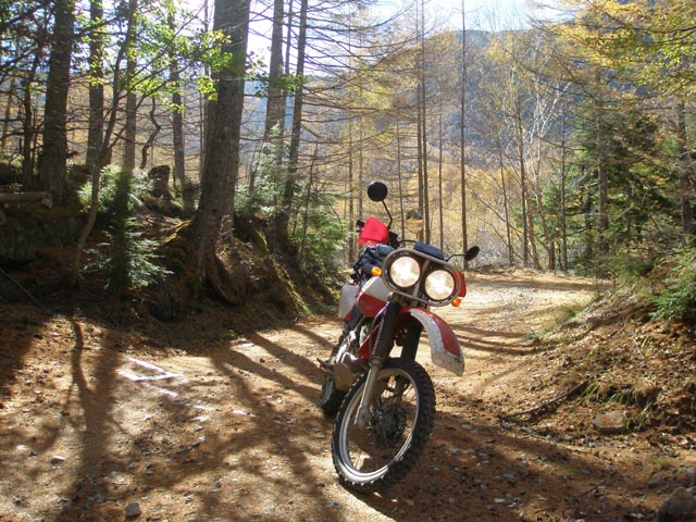 最近、以前よりも走りやすくなったような気がしているこの道だけど、峠付近では大きめな石が散らばり、相変わらず荒れた印象。こんな道を、登山客が乗用車で行き来するのをよく見るけど、ここを普通のセダンで通るのはなかなか大変だろうな・・・。