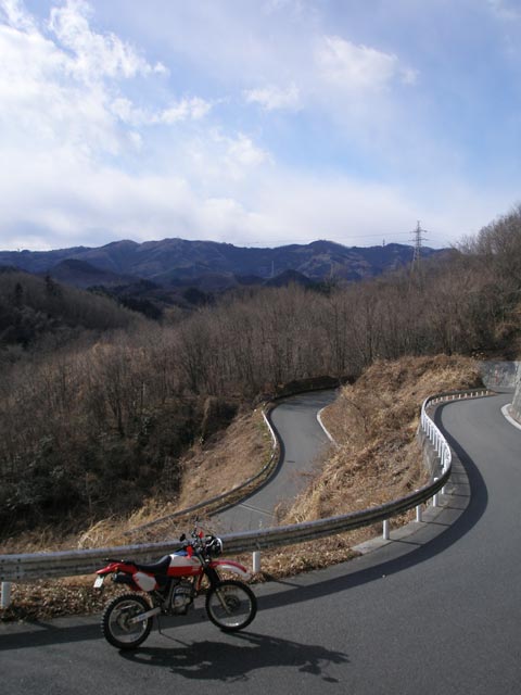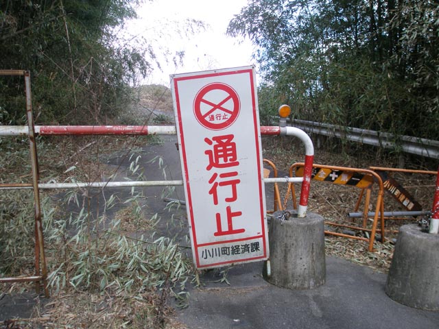 去年、知り合いから小川町に「官倉林道」という路線があるということを聞いていた。しかし、その直後から仕事が忙しくなってしまい、その後、官倉林道のことはすっかり忘れたままになっていた。最近になってふとそのことを思い出し、webで色々調べてみたのだが、「官倉林道」として検索に引っかかったのは、小川町が平成17年に発行した、「小川町50年のあゆみ」というpdf書類のみで、それによると、官倉林道は昭和49年に開通したということだけが記されている。他には、ハイカーのブログなどに、官ノ倉山を巡るハイキングコースの途中に、林道の存在が示唆される記事が幾つかヒットするのみ。官倉林道についての詳細な情報は全くと言っていいほど見つけられなかったが、幸い、その知り合いから大まかな場所のヒントだけは聞いていたので、近場の探索なら冬の今のうちにやっておこうと思い、今日は小川町まで出掛けることにした。 冬の朝の寝床の心地よさに抗えず、10時という遅めの出発。R254を進み、目星を付けておいた老人ホームへと折れる道を進んでいく。そのまま直進すればお目当ての官倉林道に着くのかと思っていたのだが・・・。 ![]() ![]() ・・・は? いきなり通行止めッスカ、そりゃないぜ・・・。今日の目的地であるはずの道がいきなり通行止めだという事実が信じ難く、そのまま隙間をかいくぐって進んでしまおうかとも思ったのだが、コンクリートの足のついた重厚な車止めの隙間は、BAJAが通るには微妙に幅が足りない。 ![]() 悔しいので柵の向こうを少しだけ歩いてみたが、どこまで延びているのか、ひたすらこんな感じの廃道が続いていた。どうやらかつてこの辺りで、ゴルフ場を造ろうとして途中で頓挫した計画があったようだが、その為に造った道なのだろうか。これはこれで興味があるが・・・。 ![]() ただ、事前に調べていた感じでは、官倉林道は未舗装林道のような感じだったので、まだ諦めきれずに他の道を探すことに。ちょうど通行止めの地点から左手に延びる道があったので、そちらへと進んでいく。 ![]() 道の脇には、ハイキングコースを示す道標も建てられていて、さっきの通行止めの道よりも、こっちの道のほうが、確かに「らしい」っちゃあらしいが・・・。 ![]() 道端に落ちていた道案内には、直進方向が官ノ倉山方面と書かれている。方向的には間違ってはいないはずだ。とりあえずこのまま進んでみよう。 ![]() おっと未舗装路きたー!やはりここか!? ![]() ・・・違う。絶対ここじゃない・・・。 ![]() 案の定、道はすぐにシングルトラックとなり林の中へと消えていった・・・。 ![]() 道の脇の貯水池には薄氷が張り、冬の山の美しさを演出しております。それはともかく、残念ながらここも目的の道ではないようだ。 こりゃあ改めて調べてから仕切り直しかな・・・と思いながらここを引き返す途中、雑木林の中で作業をしているおじさんを見かけた。地元の人ならもしかして官倉林道のことも知っているかもしれないと思い、近付いて声を掛けてみた。 「すいませーん、この辺りに官倉林道ってありませんか?」 「官倉林道・・・(今、俺が走ってきた方向を指さし)こっちからも行けるんだけど、もっと向こうから回って行けるよ。」 「え、こっちからも行けるんですか?」 「あー、でも、バイクじゃちょっと無理かなー。」 「(あぁ、こっちってのは登山道のことね・・・)さっき、老人ホームのほうから来たら通行止めの道があったんですけど、あれは・・・」 「あ、それは全然違う道。」 「あ、あそこは違うんですね(あー良かった)。」 「どこへ行きたいの?」 「どこへ行くっていうか・・・単にその道を走ってみたいだけなんですけど(やった、今日はちゃんと言えたぞw)。」 「今来た老人ホームに入る道あったでしょ?あそこからもう少し、200mくらい先に行くと、モトハシ食品ってのがあるから、そこを左に曲がって進んでいくと林道のほうに行けるよ。ただ、バイクだとどこまで行けるかなぁ?」 「わかりました、とりあえず行けるところまで行ってみます!」 と、親切に教えていただいた。こういうところで会う人ってホント、みんなやさしいよなぁ〜。 おじさんに丁寧にお礼を言って、元のR254へ出て、教えてもらった方向へと進んでいく。 ![]() あ、あれだな。信号脇の建物の屋根に看板が見える。近付いて名前を確認すると・・・。 ![]() いし本食品・・・。「モトハシ」じゃなかったよおじさん(笑)。ともかく、ここで間違いないだろうと、この道を左折して民家の並ぶ中を延びる道をしばらく進んでいく。はたしてこの先に官倉林道はあるのだろうか・・・。 ![]() やがて、道が180度Uターンして未舗装路になった。 ![]() ただ・・・なんとなくだが、ここはまだ林道ではないような気がする。林道というより、集落を繋ぐただの未舗装路のような・・・ホントになんとなくなんだけど。 ![]() ん・・・何だこの建物?特に入口も見当たらないんだが・・・。し