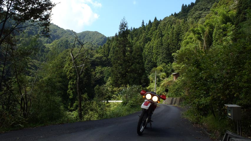| ここは起点標識は無いのかと思いつつ、起点にBAJAを停めて写真を取っていると、少し先に標識が後ろ向きに立っているのに気付いた。 |