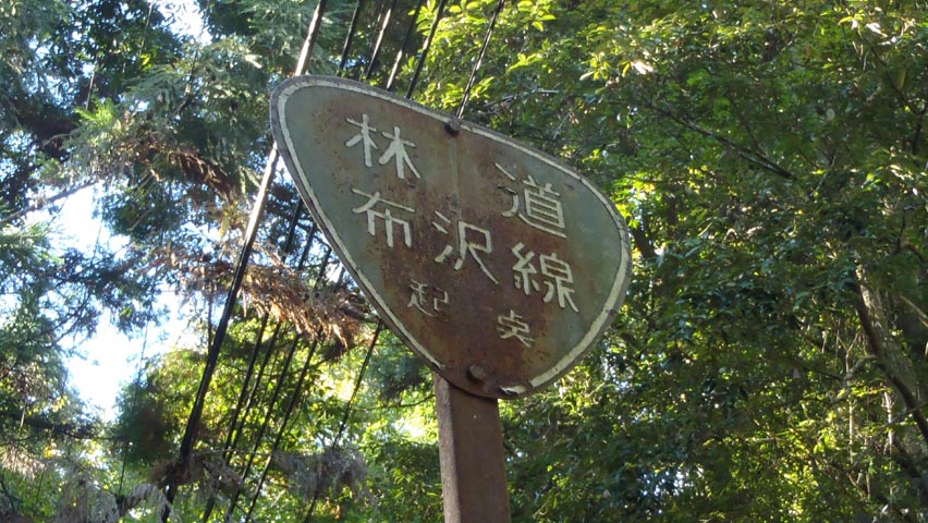 | 起点からしばらく進むと、旧タイプ標識のある林道布沢線がある。ここでも「飛び出す旧タイプ標識」をやろうと思ったのだが、残念ながらピンボケしてしまった・・・。 それはどうでもいいのだが(笑)、ここからあとほんの少し進むと、目的の林道が分岐するはず。以前取りこぼしたという事は、それほど目立たない分岐なのかと思い、慎重に辺りを見回しながらゆっくりと進んでいくが・・・。 |
