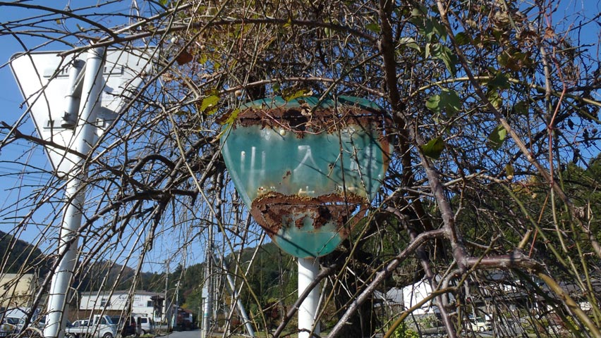 | その山入線を進んでいくと、途中で分岐するのが、この林道楠線。ここ、自分が最後に来た時にはまだ未舗装区間が残っていたのだが、最近になって全線舗装化されてしまったということを聞いていた。その確認も含めて、ここから今日の目的の林道に接続する終点へと向かっていこう。 |