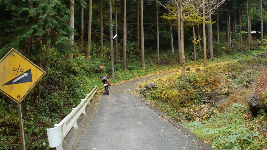| ヒィ〜・・・。 まさか路面にワナを仕掛けてあるなんてことはないだろうけど、ちょっとビビる・・・。 |