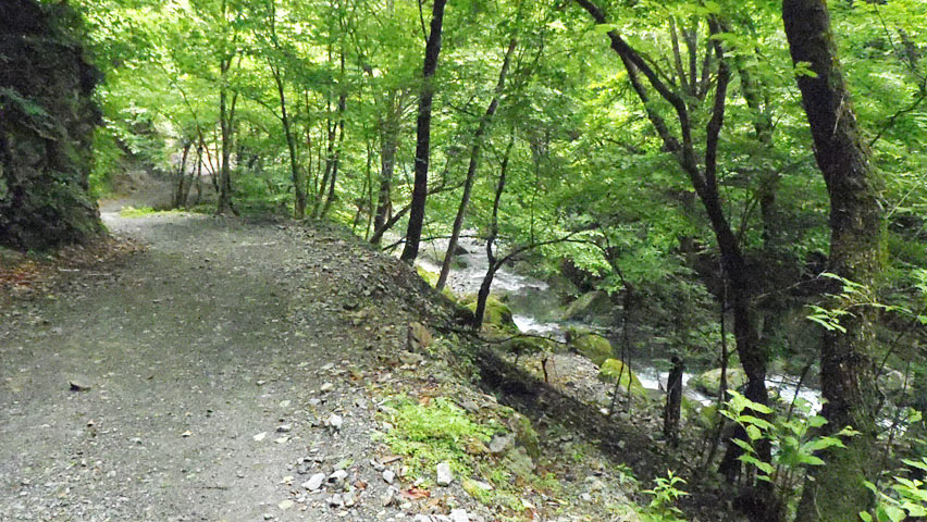 道は終始、沢に寄り添うように延びている。静かな山の中に響く、沢の水の流れていく音が耳に心地良い。