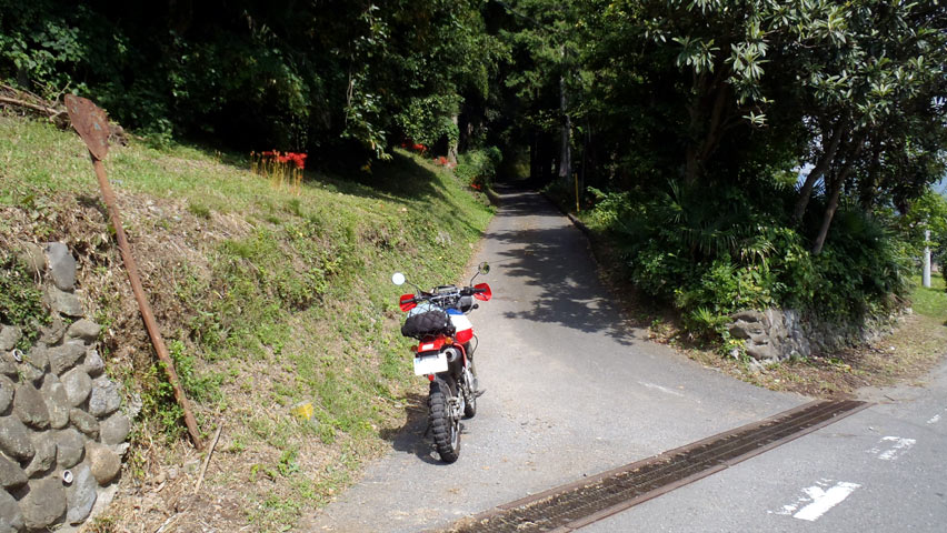 その集落を過ぎて、起点から1.2km程の地点でようやく道は未舗装となる。前回来た時もこの地点までは入ってきているのだが、ここから先は未踏の区間となる。