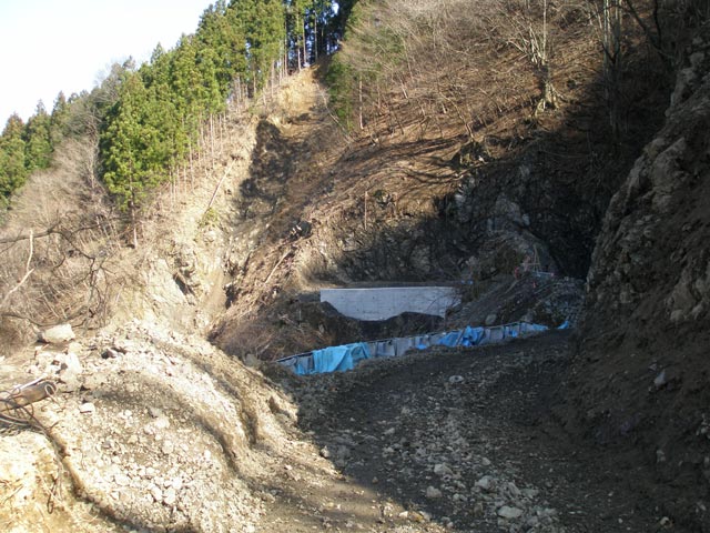 ・・・と思ったものの、そこから僅かに進んだ地点、起点から約2.7km程で重機が作業をしている真っ最中だった。と言う訳で、上の写真は作業している方に気付かれないうちにそそくさとUターンして来たところ(笑)。起点の看板に書かれていた工期はとっくに過ぎていたので、てっきり工事なんてしてないかと思ったのに、こんな年の瀬までお疲れ様です・・・。
