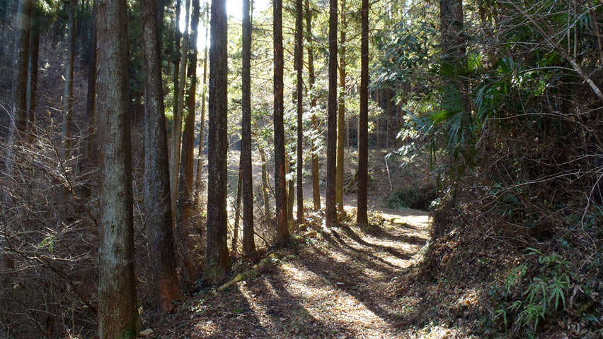 道は幅員も広く、斜面の木々も間伐されて、かなり広々とした雰囲気。正面に見えている小屋はトイレのようで、かなり整備も行き届いているようだ。