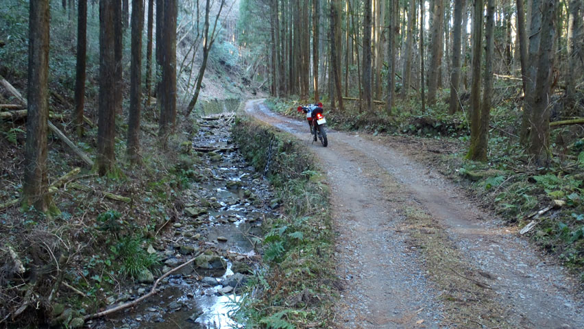 その分岐から少し進むと、普段はあまりこの辺まで人も入ってこないのか、路面のコンディションいかにもなマイナー林道のそれに変わって来た。