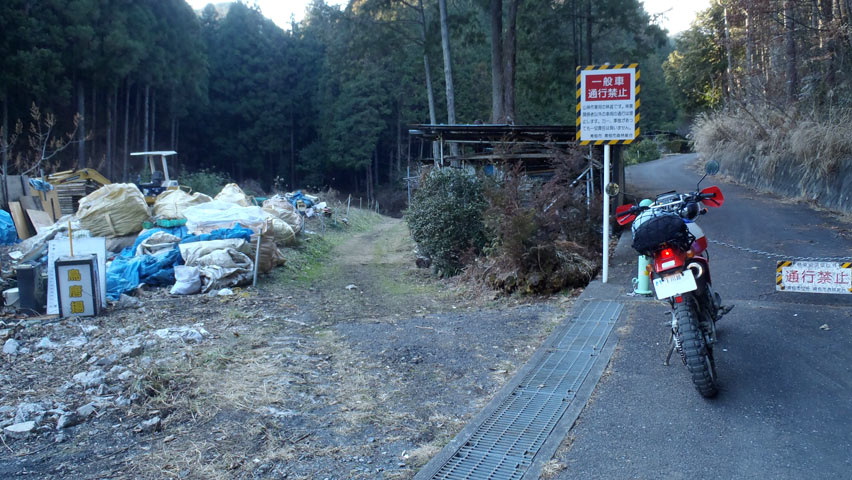 だけど、その起点の脇から未舗装路が延びていて、こっちのほうが楽しそうなんだけど。道端にはゴミが集められていて雰囲気は最悪だけどな(笑)。