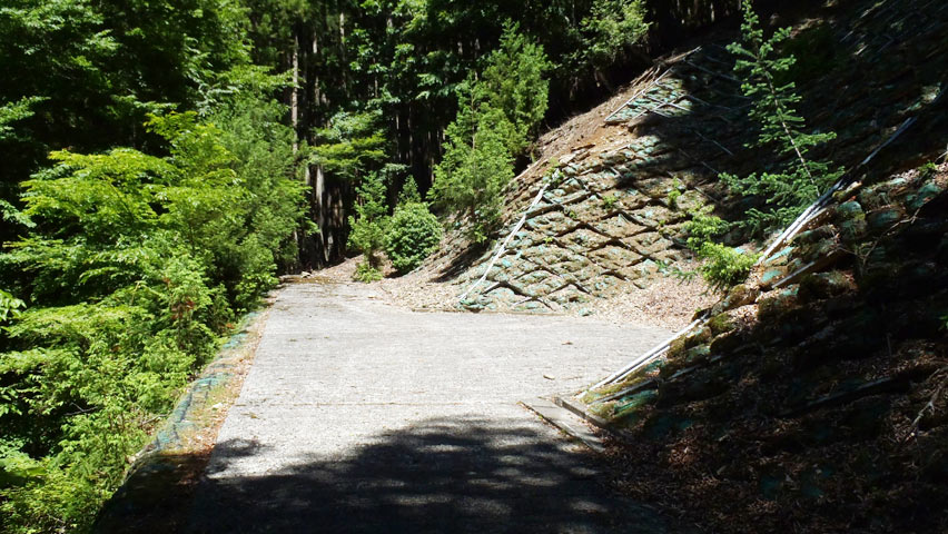 これだけ急勾配の路線であるから、路面は全線に渡ってコンクリート舗装がなされている。ここが未舗装だったら景観的にはどれほど美しいかとも思うが、もし未舗装のままだったらあっという間に雨裂が抉られ廃道同然となっていただろうな。