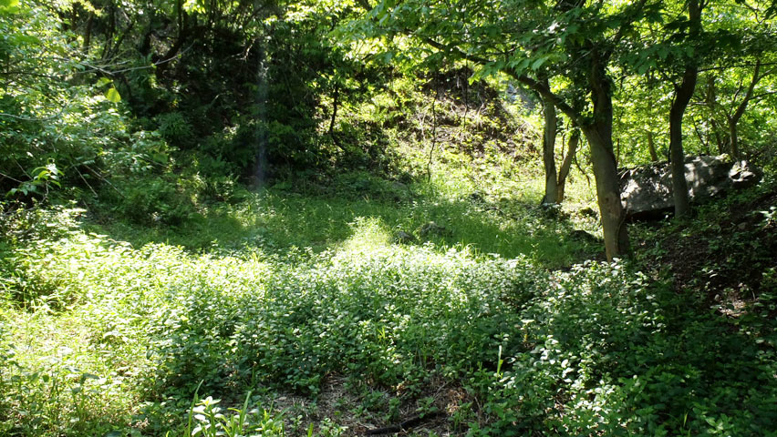 ただ、この脇には土手のような盛土があり、その向こう側には、人工的とも思えなくも無いような平場が見える。