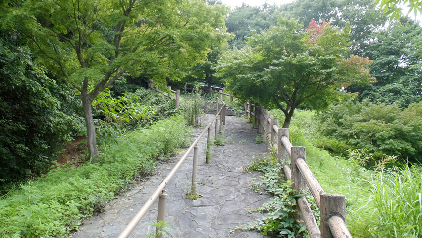 その歩道の続く斜面を見下ろしてみたが、道に沿った柵は見えるものの、道そのものは雑草に覆われてかなり不明瞭になってしまっている。こっちの道も、今ではもう訪れる人もいないんだろうなあ。