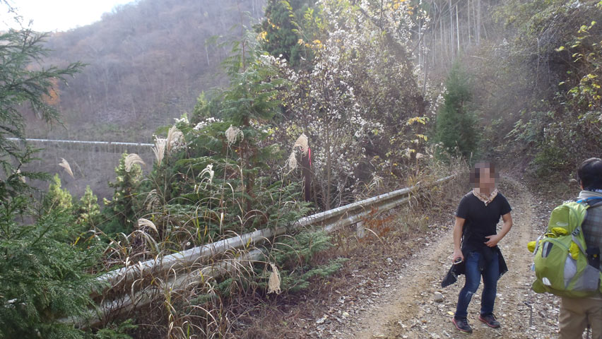 落合へ下るルートから大名栗線へと合流し、45分程車道を辿って、白谷沢ルートとの交差地点に戻って来た。往きは多くの人で賑わっていたこの場所も、午後のこの時間では下りの人がぱらぱらと休憩しているだけだった。
