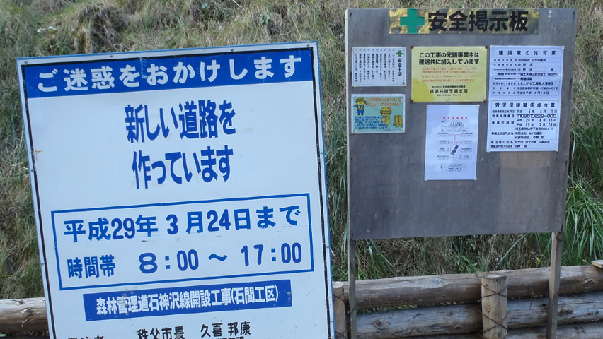 この石神沢線、俺が前回来た時には起点から約1.5kmの地点で行き止まりとなっていたのだが、最近こちらのBBSで、そこからさらに延長されているとの報告を受けていた。以前と比べてどれだけ延びているのか確かめに行こう。