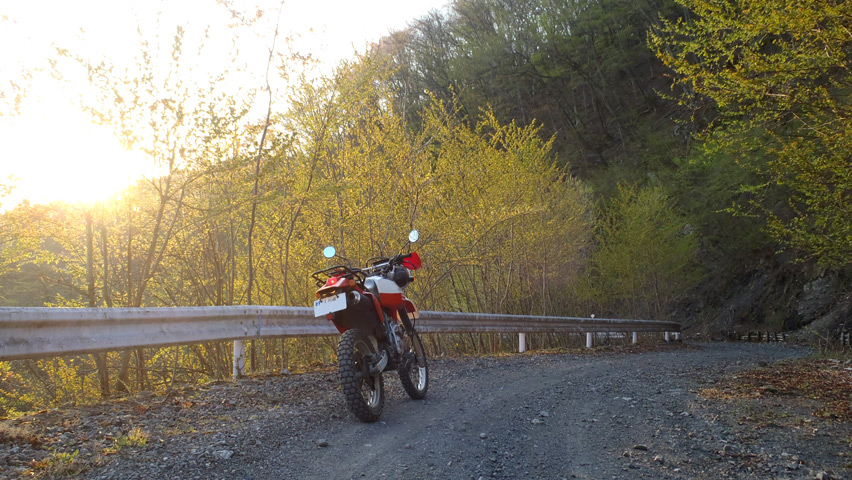 おはようございます。林道で迎える朝って、何度味わっても清々しいものだ。ここ、日の出を見るには最高の場所だな!