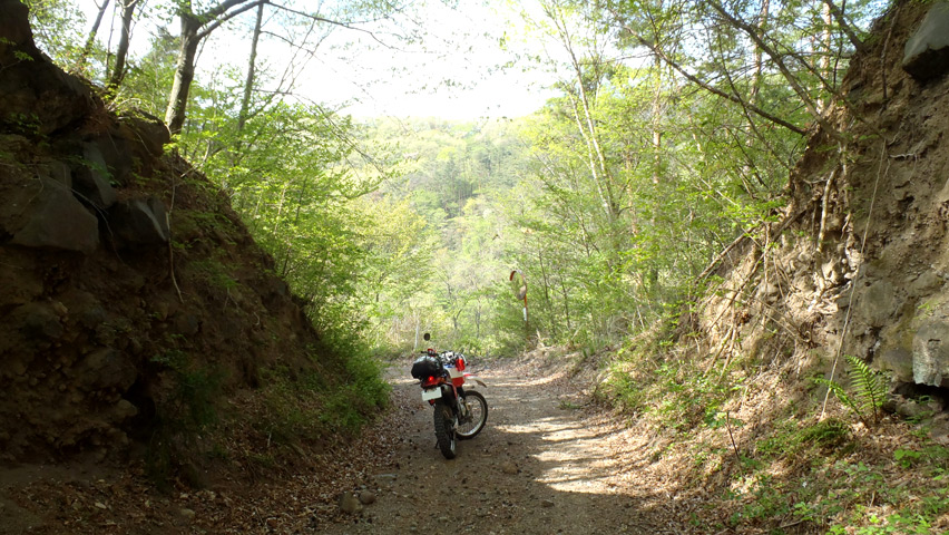 この、芽吹いたばかりの黄緑色に包まれた景色。いよいよ林道のシーズンが始まったんだなあ、という感じがして凄く好きだ。
