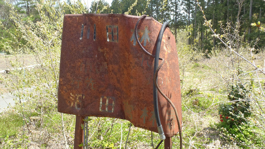 その入り口の脇には、ほぼ文字の消えかけた錆だらけの看板が立っていて、近づいてよく見ると、そこには川田林道と書かれている。路線名の下に微かに残る文字によれば、延長は1,900m程らしい。