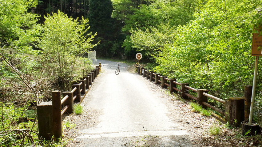 天目山林道も10kmを越えた辺りからは木々も若葉の芽吹きにはまだまだ早い様子だったが、だいぶ標高を下げてきたこともあって、周囲の景色は再び爽やかな新緑に包まれている。