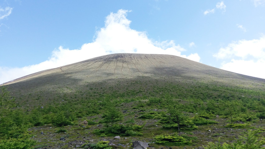 浅間山の山頂へ向けてなだらかに続くこの斜面。周りに何も無さ過ぎて距離感がおかしくなるが、仮にここからあの山頂まで往復するとしたら、一体どれだけの時間が掛かるんだろう・・・。