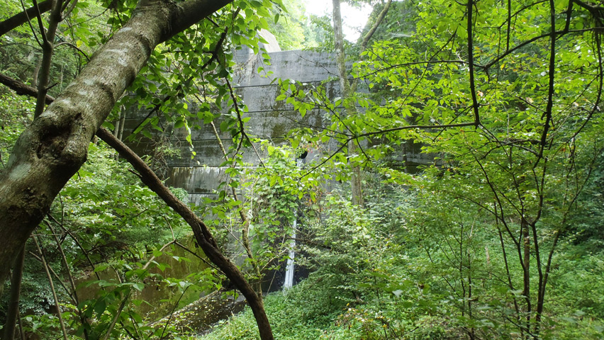 やがて、こんな山奥の林道に似つかわしくないとも思える立派な構造物が見えてきた。山吹橋と、その奥に見えるのが山吹トンネルだ。