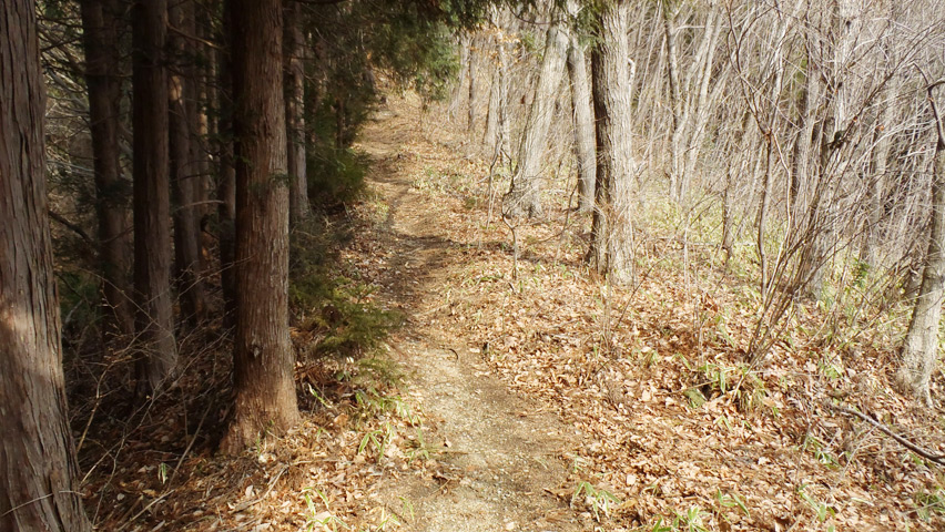 先程までどんよりとしていた空も、ようやく晴れ間が顔を出して来た。空は薄水色に染まり、春の空気感を醸し出している。この空の下で見る冬枯れた木々は、これから芽吹く春の生命力を感じさせて、これも林道で見る景色の中でとても好きなもののひとつだ。
