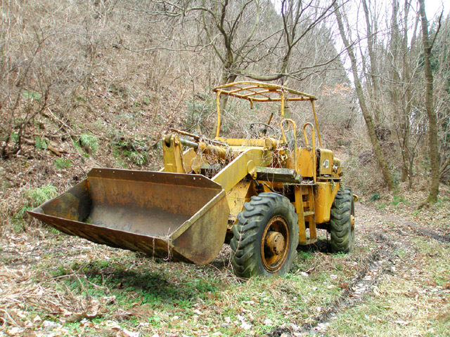 この写真は前回来たときに撮ったものだが、これが今回目当てにしていた物、コマツのペイローダーだ。当時も機体に枯れた蔦が絡み付いていたりもしたので、このままここで放置されっぱなしになっているかも、何て淡い期待を抱いてたんだけど、さすがにそれは無かったか。うーん、残念。