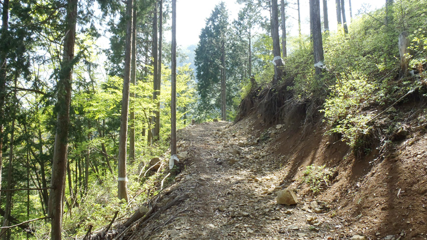 作業道に入ると案の定、削りっぱなしの簡素な道が続いている。