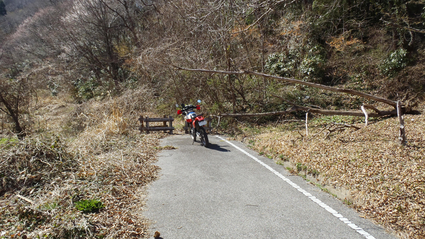 ここまで辿ってきて結局最後にバリケードとか!まあ、バイクが通るだけのスペースはあるから大丈夫なんだけどね。つーか、こっち側から見るとあの先に車道があるなんてちょっと気づかないよな・・・。