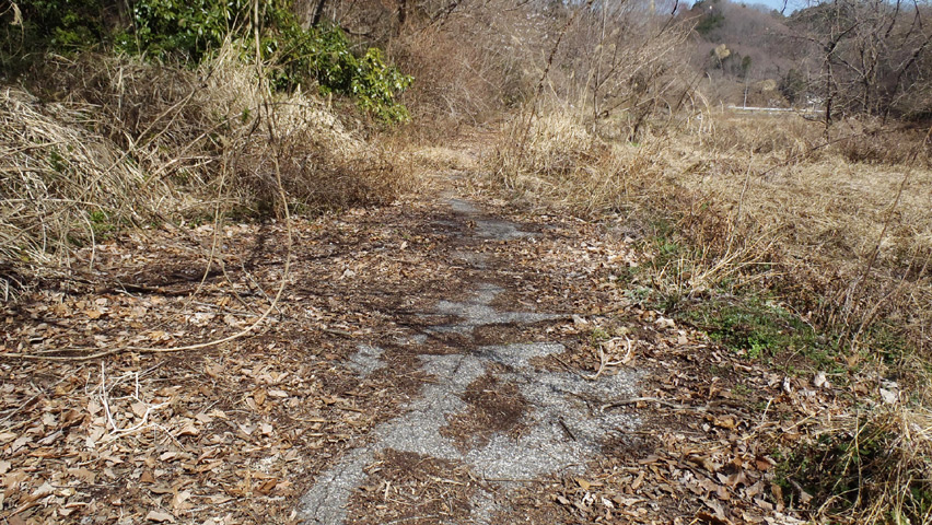 バリケードから少し歩くと舗装は途切れたが、その先にも道の痕跡が続いているのが分かる。